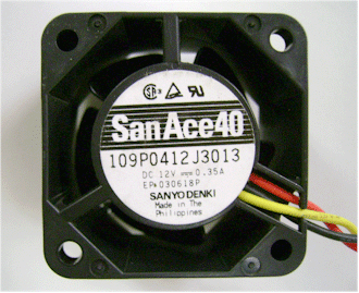40x40x28mm fan by Sanyo Denki, 3-pin, 12" long wires, 4.2 Watts, 12500rpm